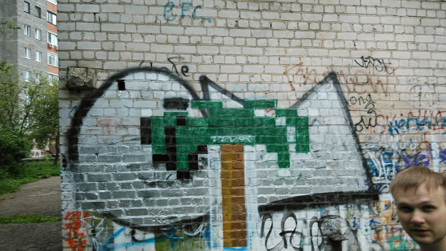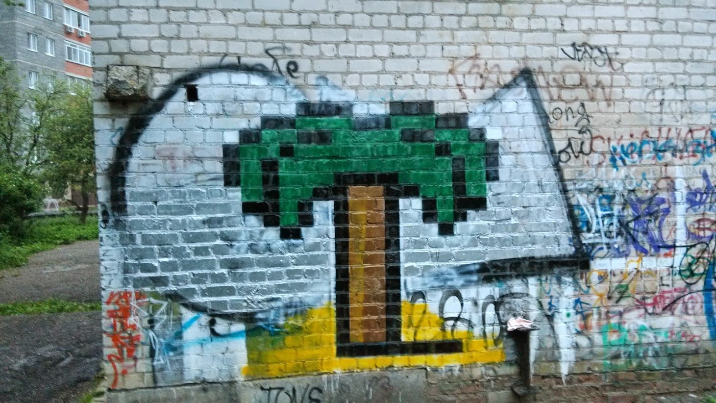 Не хватило светло-зеленого, пиксели не совсем квадратные, но мы остались довольны. Полностью истратили только белый балончик, да и то на закраску старого рисунка. Бюджет картины около 500р